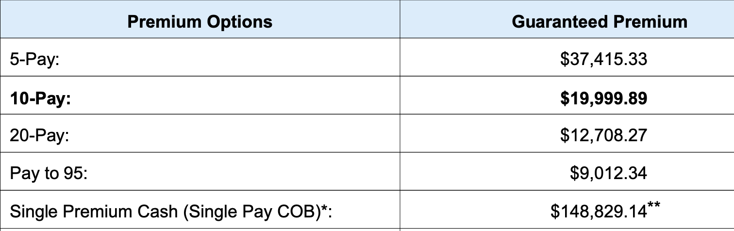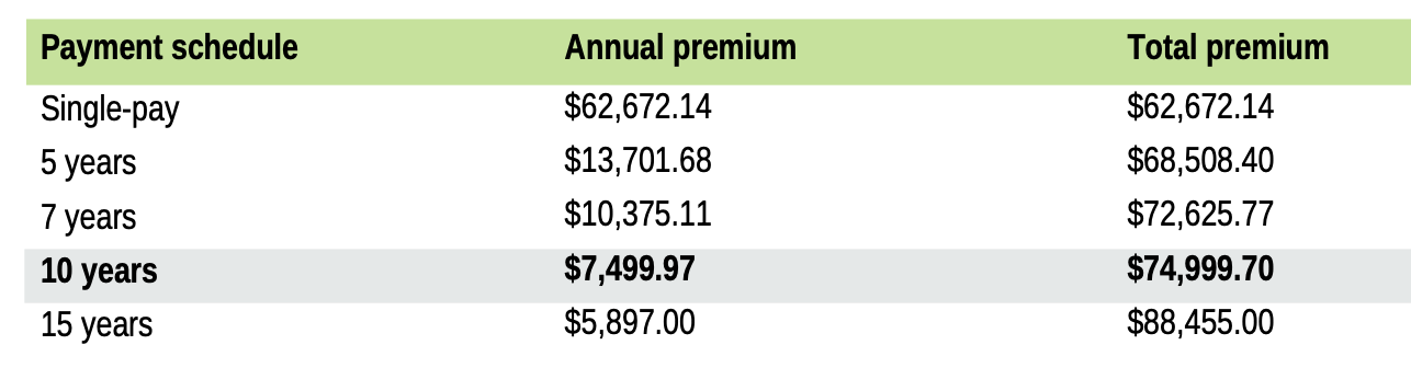 - If you’d like higher or lower annual benefits, you can adjust your premium accordingly—benefits rise (or fall) proportionally (e.g., by 25%).