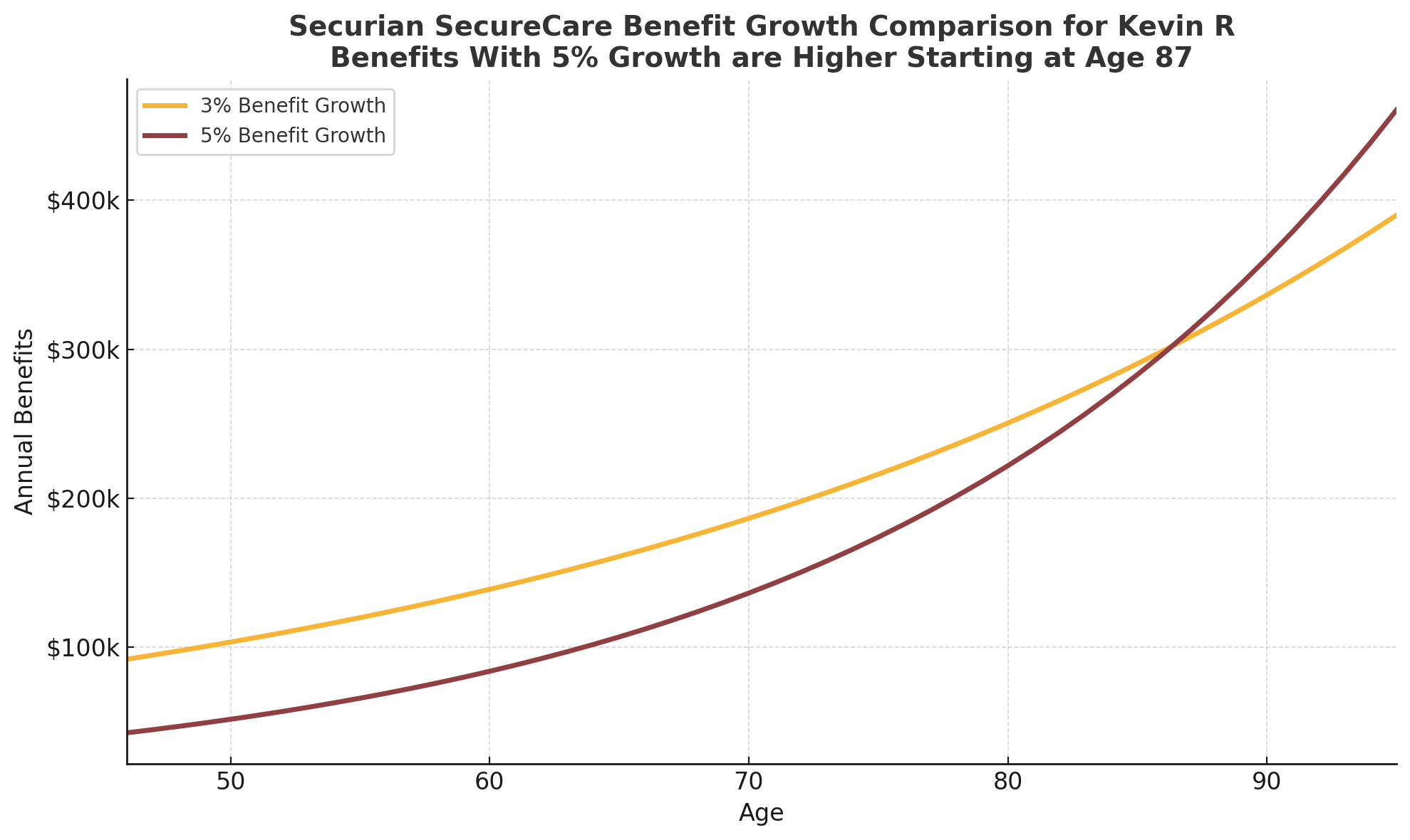 ... while Securianās breakeven is closer to age 87, meaning Securian charges relatively more for 5% growth.