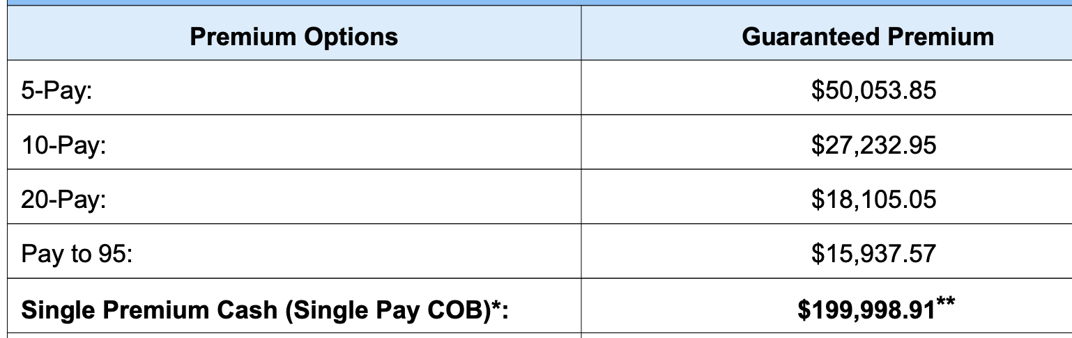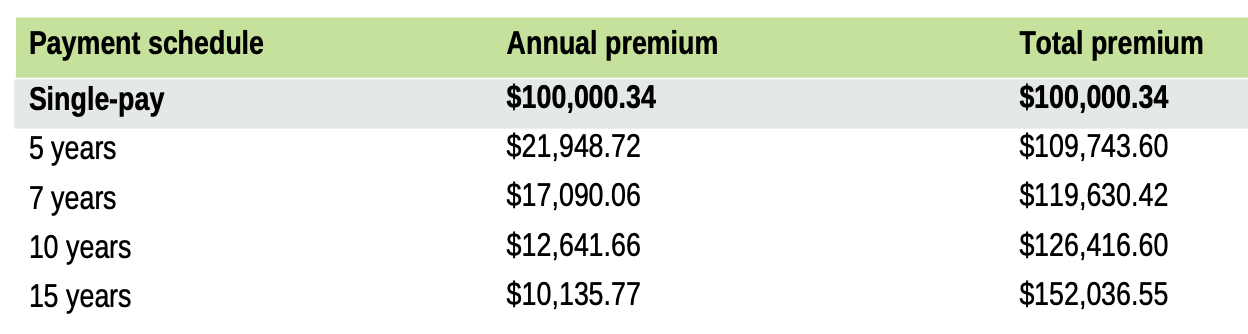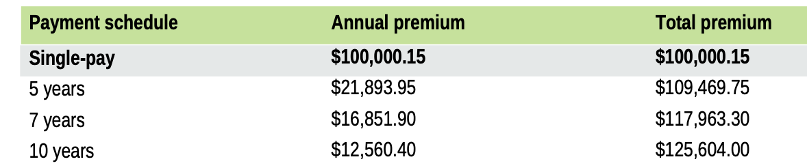 Option B: These are two individual policies from Securian. Each of you receives 6 years of benefits that are not shared. Annual benefits are slightly lower than Option A, but total potential benefits and the refund amount are higher.